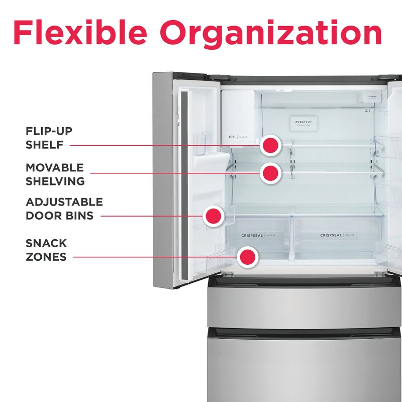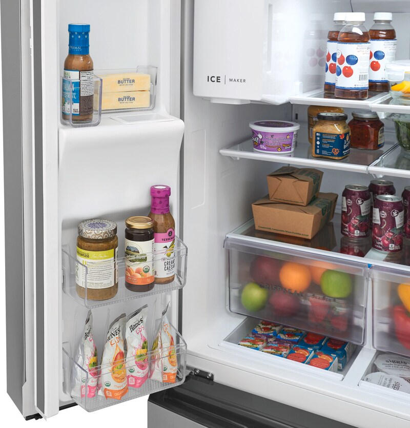 Store more with clever organization solutions that maximize usable space, including in-door condiment storage, a flip-up shelf, and SnackZones.