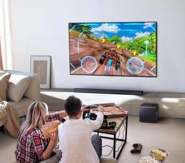 Dive straight into the gaming action in vibrant 3D sound. Your soundbar automatically adjusts the audio when it detects a console connected to your Samsung TV — also optimizing for the type of game when playing via Samsung TV's Gaming Hub.