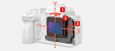 A high-precision image stabilization unit, advanced gyro sensors, and leading-edge algorithms detect and correct camera shake, achieving a groundbreaking up to 8.5-step effect at the centre and 7.0-step at the periphery, and transforming handheld shooting with precision down to the single-pixel level and the finest subject details. With compatible lenses that include built-in stabilization, improved body-lens synchronization provides effective blur control even at otherwise problematic telephoto focal lengths. [1] Yaw [2] Roll [3] Pitch