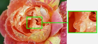 When extra-accurate focus is called for, such as when you're taking macro shots, you can display a magnified view of the general area you want to focus on. You can then finely adjust the exact point of focus using the touchscreen or the focus point selector.