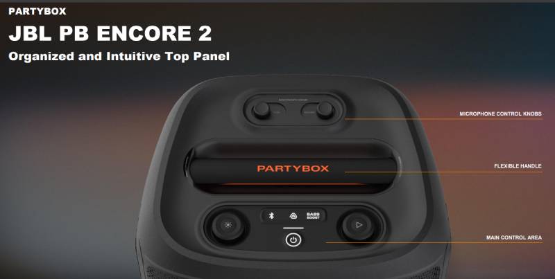 JBL PartyBox Encore 2 Portable Party Speaker with two Wireless Mics 100W Powerful Sound Built-in Dynamic Light Show & Splash Proof