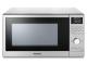- Stainless Steel Microwave features pre-programmed settings for easy cooking, reheating, and defrosting