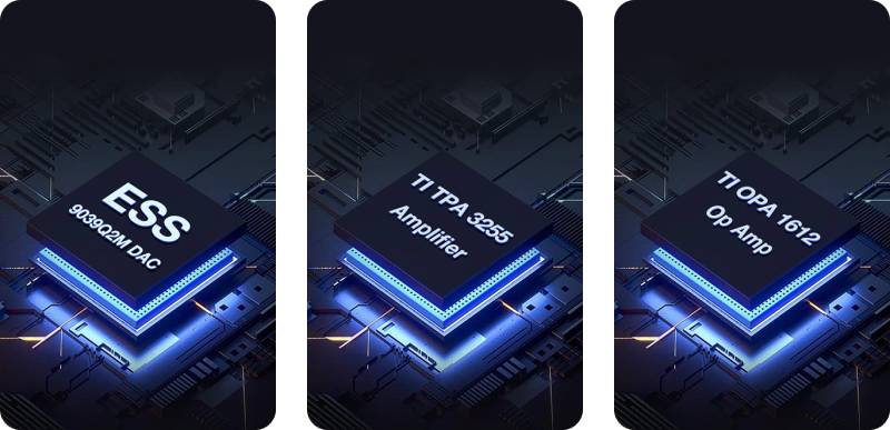 | Premium Audio Components: | ESS 9039Q2M high-performance DAC, Dual TI TPA3255 Amps, TI OPA1612 op-amps for ultra-low distortion and rich, detailed sound. |