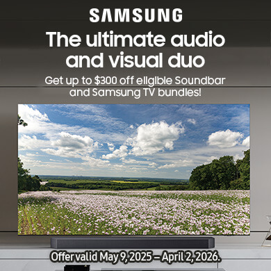 The ultimate audio and video duo. Get up to $300 off Select Sound Device when Purchased with Eligible Samsung TV