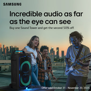 Samsung Sound Tower Buy One Get One 50% Offer valid from October 31 to November 20, 2025